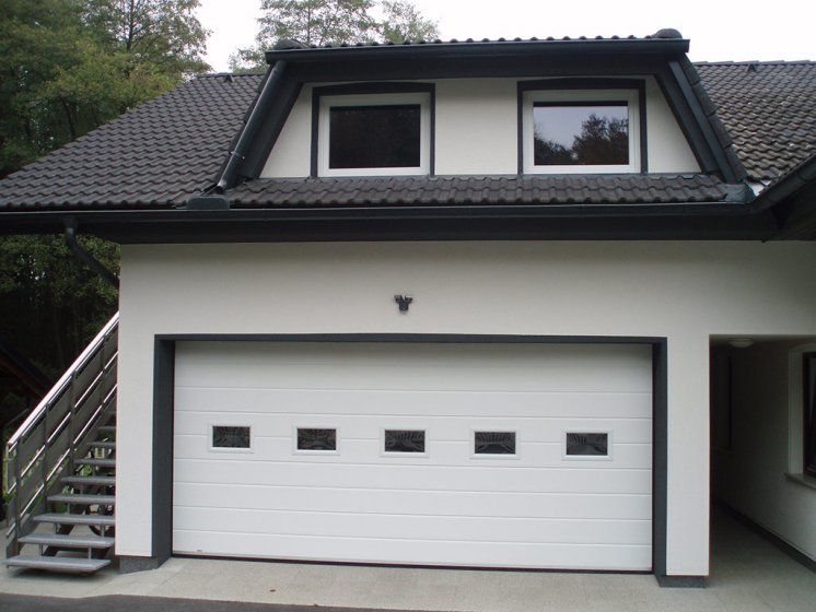 Diese Konstruktion ermöglicht eine optimale Raumnutzung in der Garage und erlaubt zudem ein direktes Parken vor dem Tor. Für zusätzlichen Komfort und praktische Nutzung bieten wir auf Wunsch den Einbau einer Schlupftür, die den Zugang noch flexibler gestaltet.