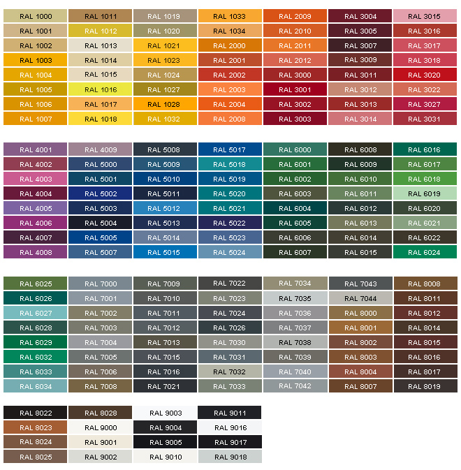 Neben den RAL-Farben haben Sie auch die Möglichkeit, aus verschiedenen Holzimitationen zu wählen, darunter:
