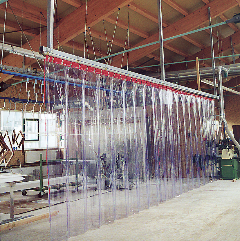 • Material: Die PVC-Streifenvorhänge und Schnelllauftore bestehen aus transparenten PVC-Streifen, die in verschiedenen Breiten erhältlich sind.